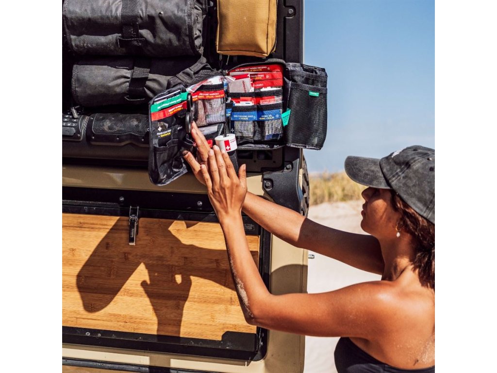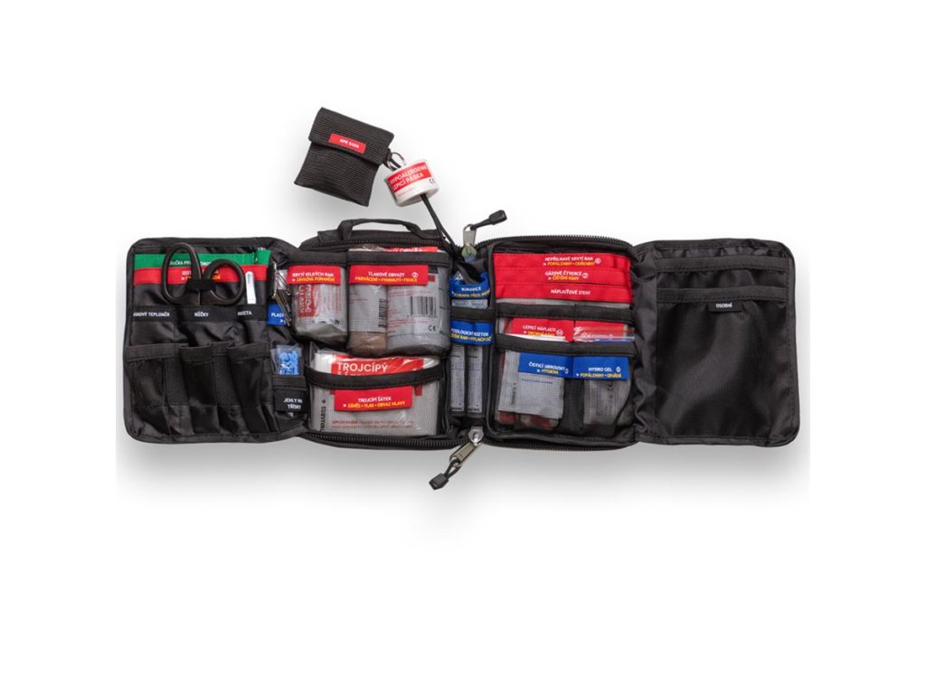 Obal z odolného 600D Oxford polyesteru, kvalitní zipy YKK a kompatibilita s MOLLE systémem zajišťují dlouhou životnost a snadné uchycení. Celý obsah je v češtině, včetně názvů položek, návodů k použití a příručky první pomoci. K dispozici je i mobilní aplikace iFirstAid zdarma.