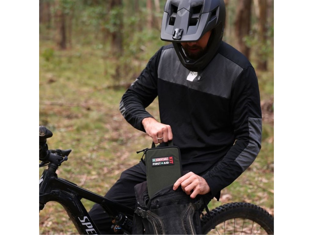 SURVIVAL Slimline Kit je ultratenká lékárnička navržená pro aktivní pohyb v terénu. Díky tloušťce pouhých 3,5 cm a hmotnosti 655 g ji snadno uložíte do batohu, cyklotašky nebo ke své výstroji, aniž by překážela.