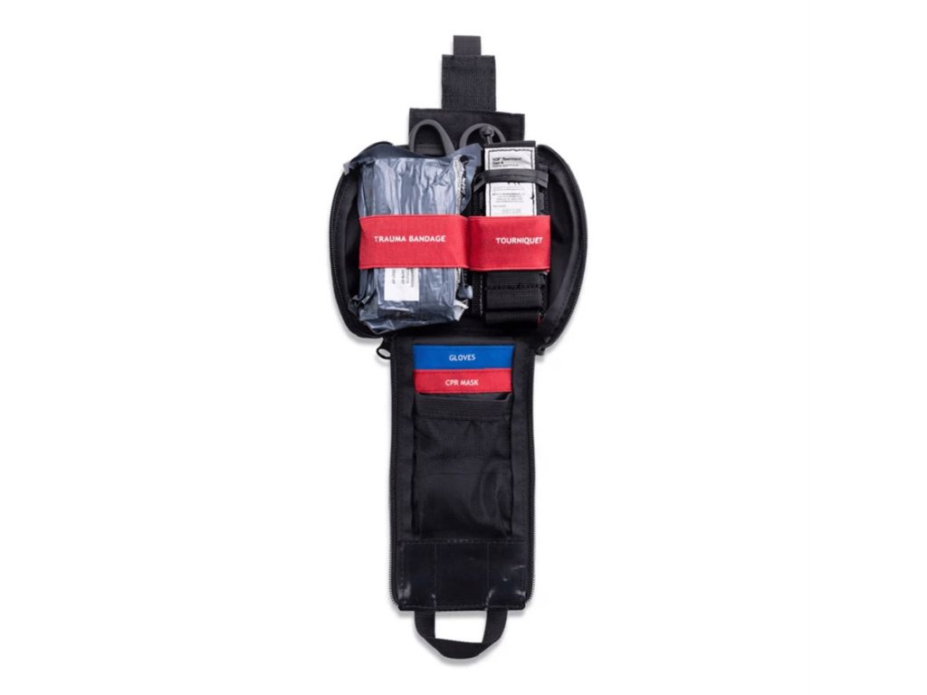 Jádrem výbavy je profesionální taktický turniket TACMED SOF Tourniquet profesionální T3 Israeli Trauma Bandage, trauma nůžky v černé barvě a ochranné pomůcky. Kit je postaven tak, aby zpomalil či zastavil masivní krvácení a stabilizoval zraněného do příjezdu ZZS.