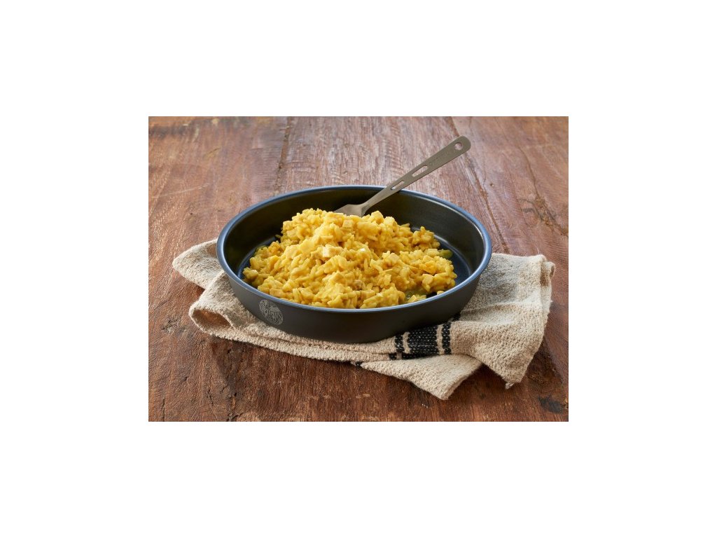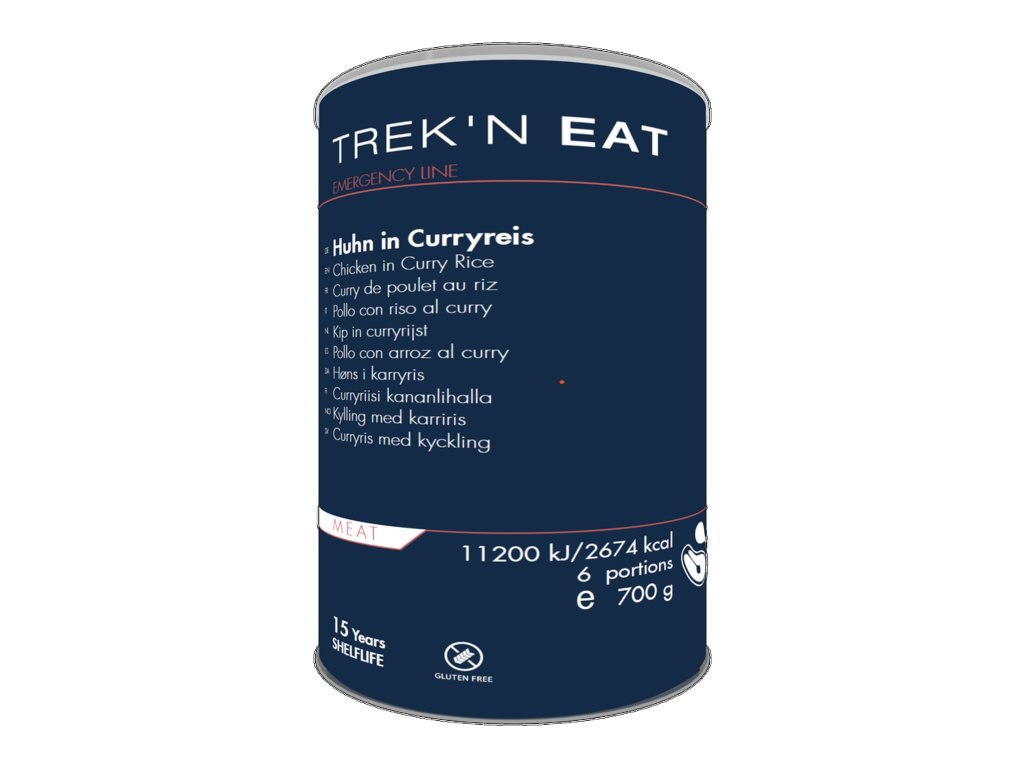 Kuřecí soté s aromatickou kari rýží balené v plechové dóze. TREK'N EAT je chutné jídlo s důrazem na výživové hodnoty a pokrytí potřebné energie s vysokou dobou expirace. Jedná se o balení 6 porcí s celkovou hmotností v sušeném stavu 700g (a cca 2520 g ve stavu po přípravě).