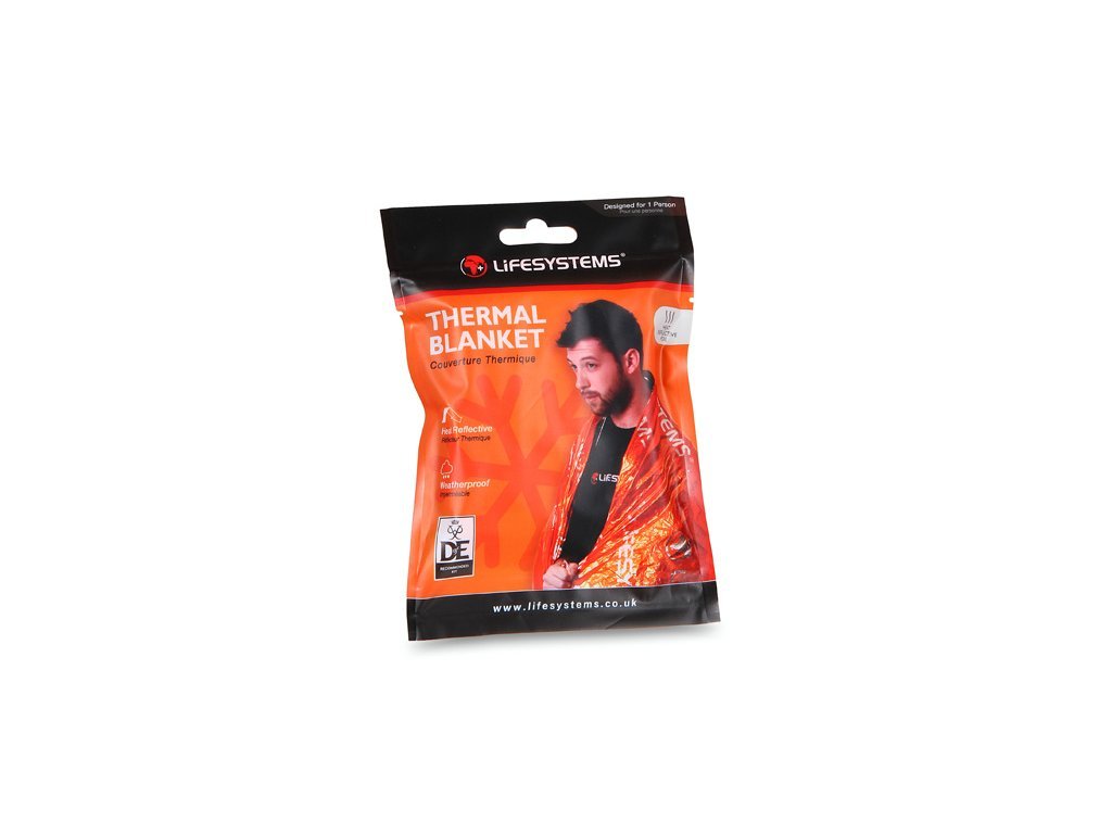 Lifesystems záchranná folie Thermal Blanket je lehká, skladná pokrývka, která pomůže udržet tělesnou teplotu v případě úrazu nebo pokud se prudce zhorší počasí. Materiál pokovený polyester, rozměry 90x100x28mm (sbalená), 210x140cm (rozbalená), hmotnost 55g.
